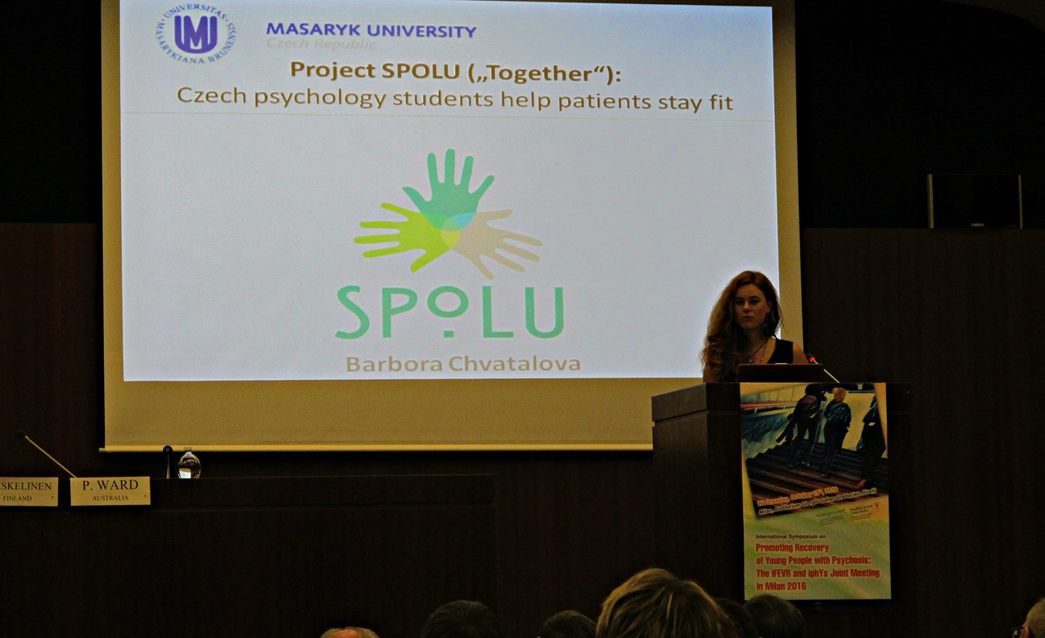 Barbora Chvátalová vystoupila s příspěvkem na přidruženém mezinárodním sympoziu na podporu zotavení: Bolts from the Blue - The iFEVR and iphYs Joint Meeting in Milan 2016. IphYs je australská organizace, prosazující za pomoci programu Keeping the Body in Mind YMH podporu fyzického zdraví u mladých lidí s onemocněními psychotického spektra. Prezentace byla proto zaměřená zejména na představení aktivit tanečně-pohybového teamu Projektu SPOLU.