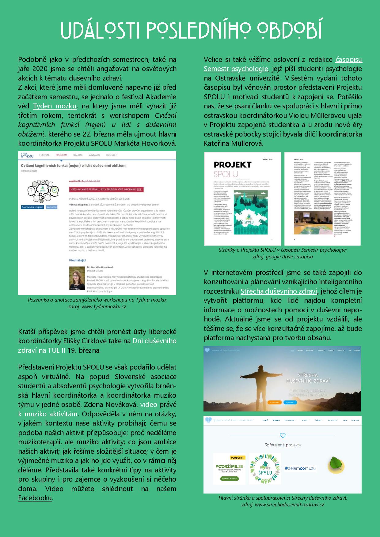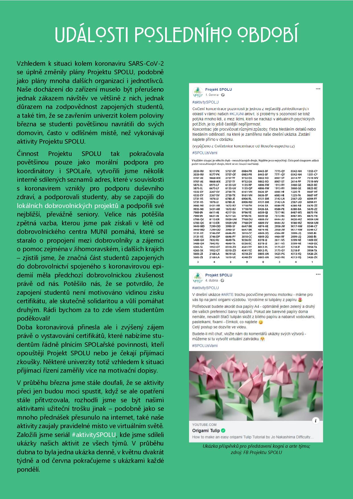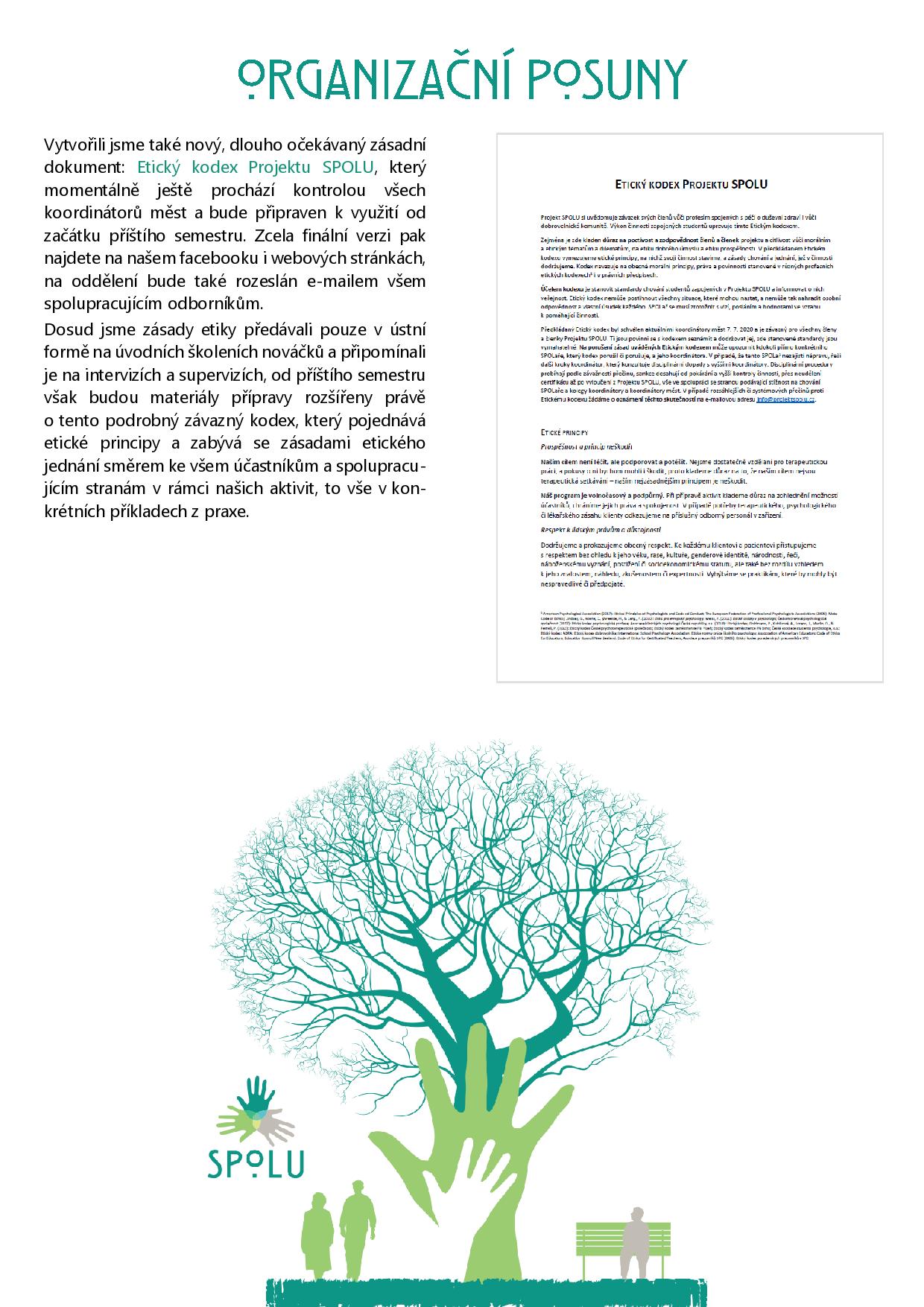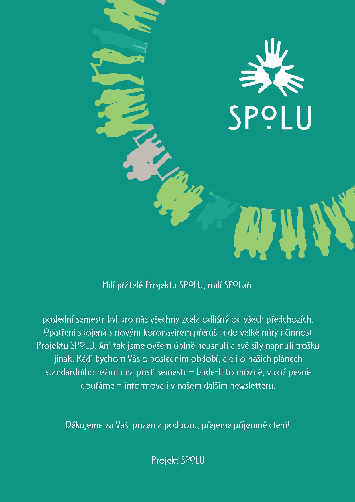aktuální situace naší činnosti příliš nepřeje, i v ní se nám však podařilo podílet se na nejedné vydařené akci, podpořit vnitřní fungování Projektu SPOLU a energii investovat do dalších oblastí, které jsme v běžném provozu tolik nestíhali rozvíjet. Rádi se s Vámi o tyto posuny dělíme v našem aktuálním newsletteru.